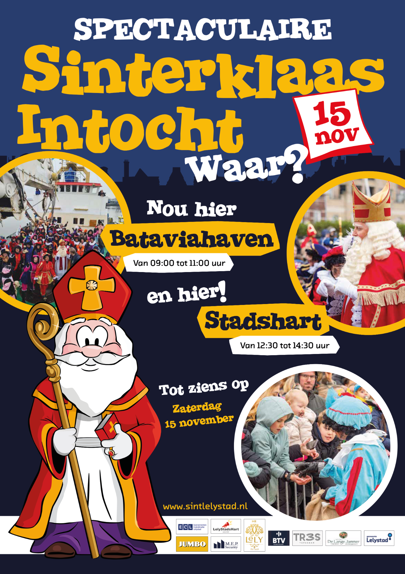Sinterklaas komt weer aan in Lelystad, en dat betekent feest voor alle kinderen! Het programma voor deze bijzondere dag is als volgt: