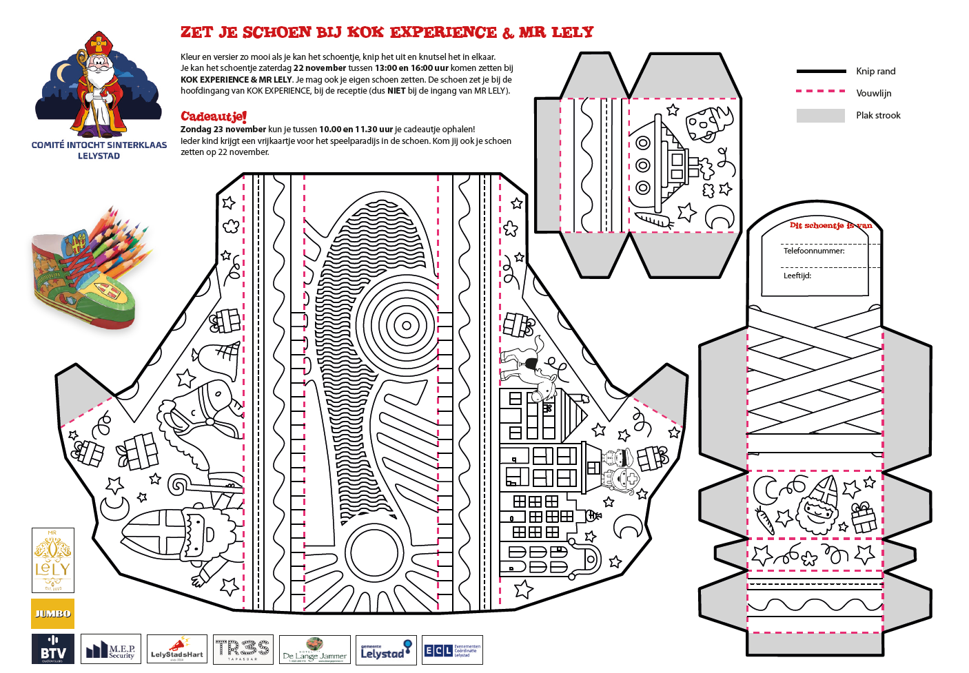 Speciaal voor alle kinderen van Lelystad ligt er vanaf nu een gratis Sinterklaas kleurplaat klaar bij heel veel winkels in de Gordiaan en de Wissel. Heb je zin om je eigen schoentje in te kleuren en in elkaar te knutselen? Haal dan snel jouw kleurplaat op bij o.a.: